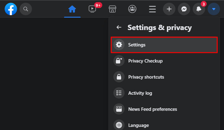 Click the arrow at the top right hand corner and select Settings & Privacy and then choose Settings.